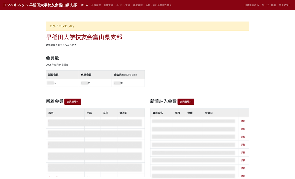 早稲田大学校友会富山県支部様 同窓会名簿管理システム開発
